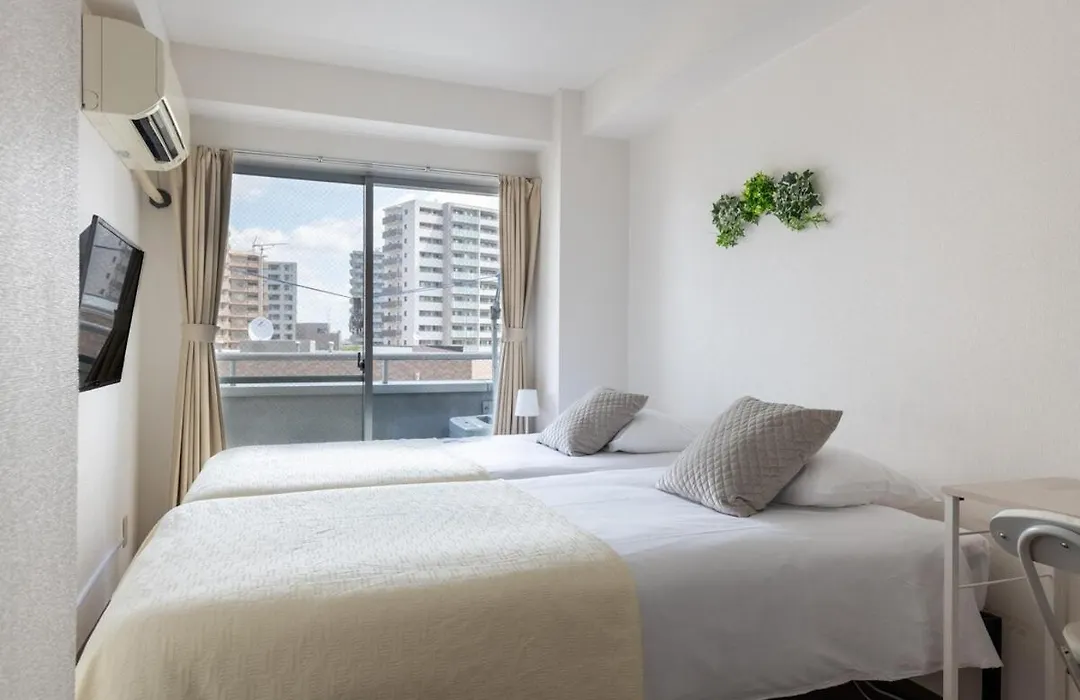 住宿处有小厨房。 这间16平方米的公寓距离东京羽田国际机场有30公里。